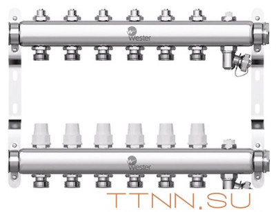 Коллектор нерж. для отопления Wester 1"-3/4 в сборе на 6 выходов с 2 заглушками отзывы